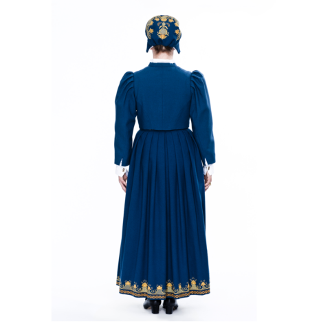 Stakk og liv er i toskafta bunadty og kjem i fargane blå, raud, blågrøn, skarp grøn og mørk grøn